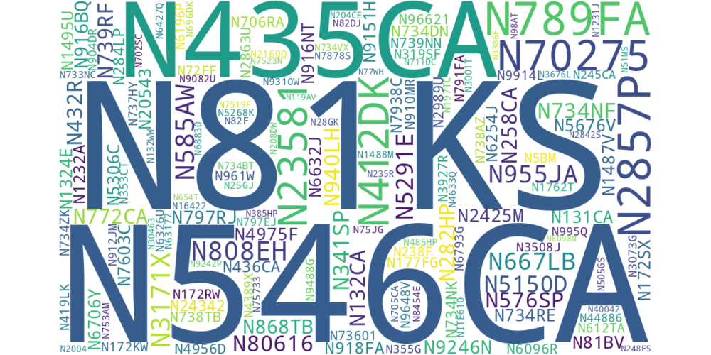 Aircraft logged are general aviation class only. Commercial airlines, military, and public safety are not included.